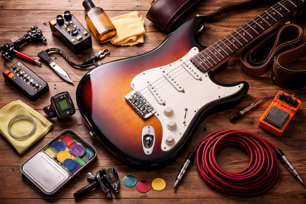 - Beginners benefit most from practical essentials such as tuners, metronomes, picks, and learning tools.
